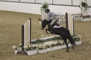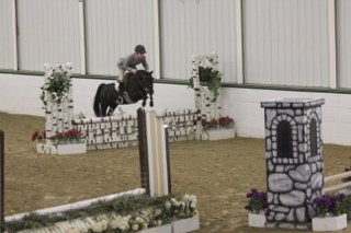 We showed her in Modern Pleasure Halter as a 2 year old and won all 5 of her Grand Champion Mare wins and 31 HOF points towards her Modern Halter Hall of Fame award, then switched over to training/showing in performance as a hunter/jumper under saddle at non-Shetland events (where there are more events). Read about some of her jumping competition wins/championships in the news on the right, "Jumper Under Saddle".